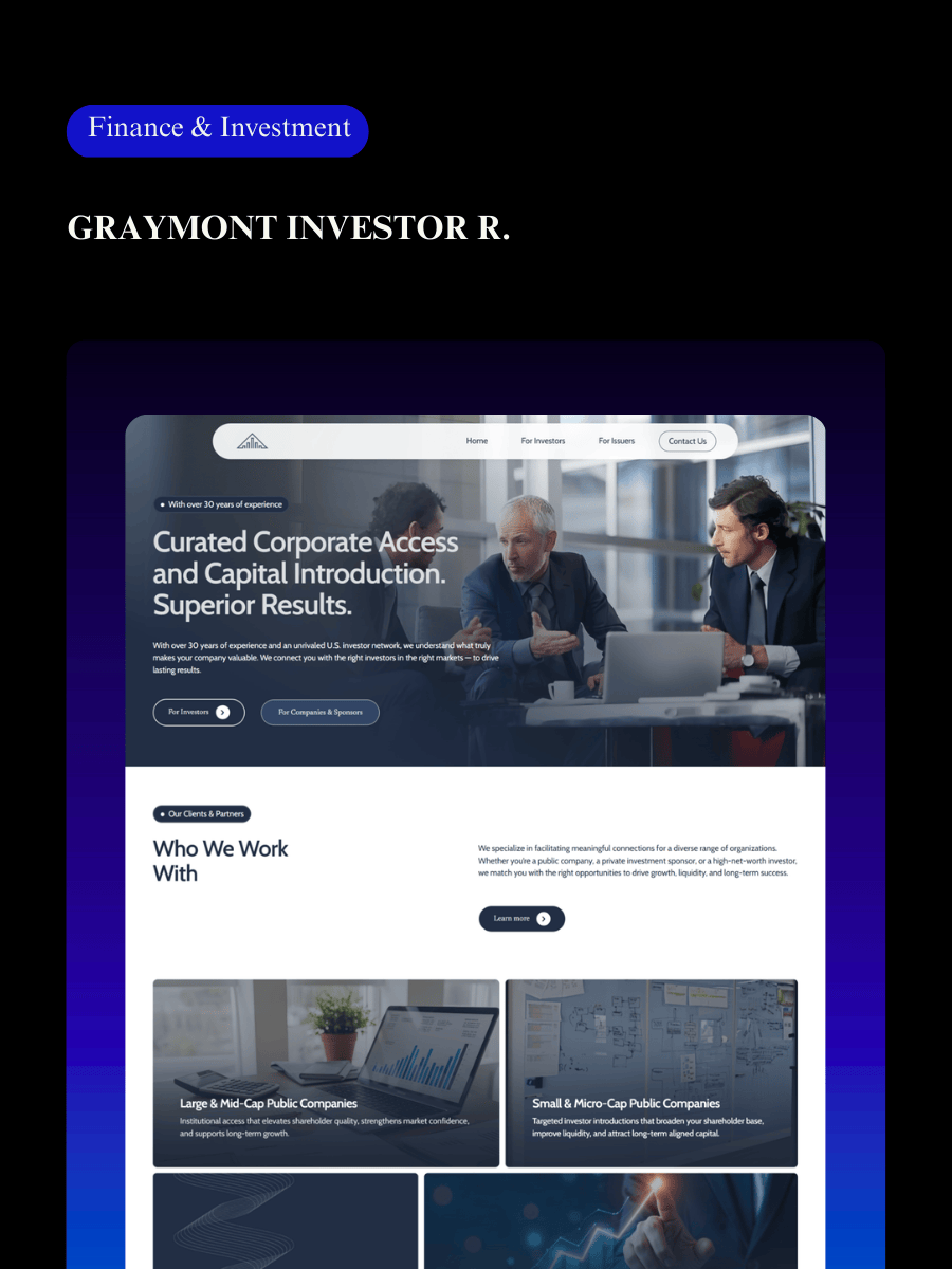 Our flagship offer for high-level organisations that demand excellence. A bespoke solution combining strategy, innovation, and cutting-edge design. Best for complex builds.