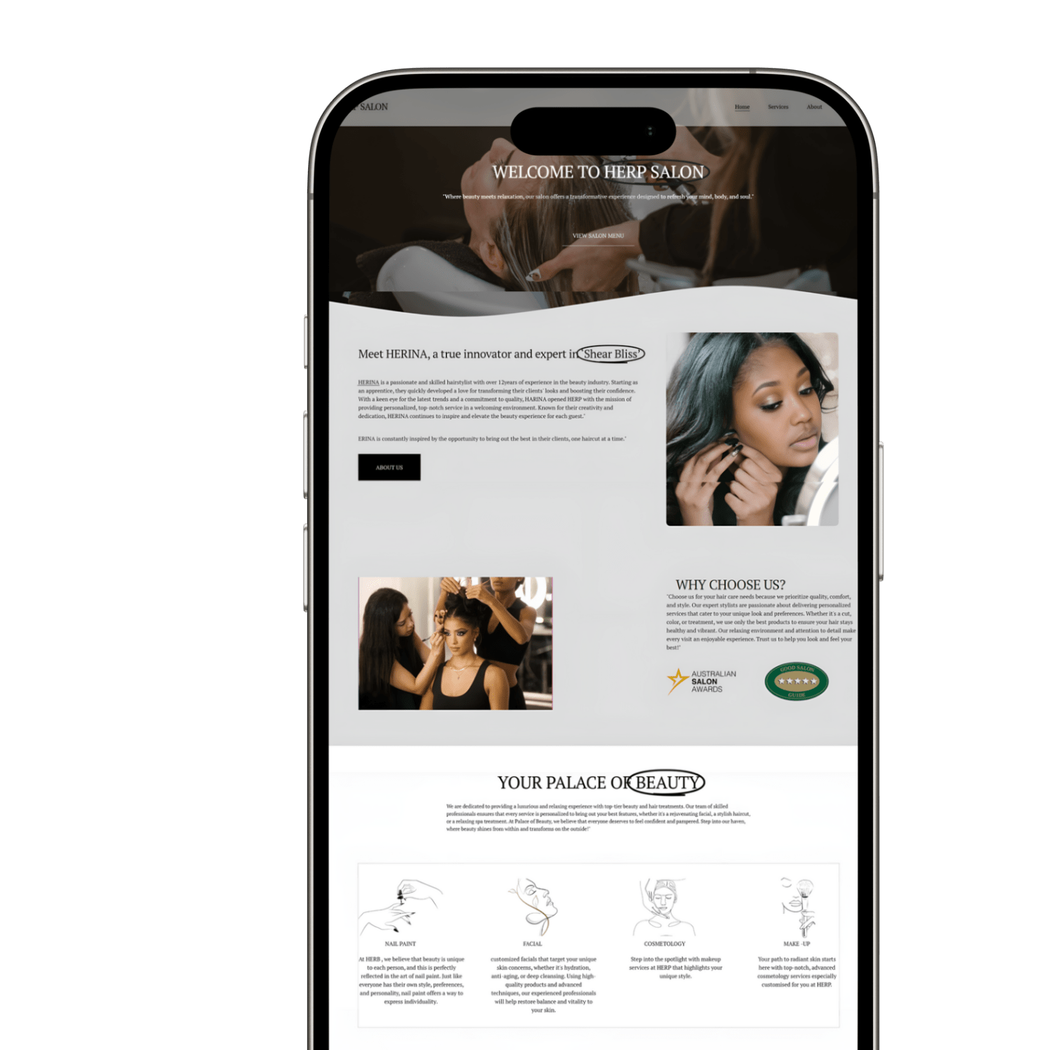 Harp Salon is a sleek and user-friendly website that showcases the salon's services, stylists, and online booking options. The design offers a seamless, professional experience for clients, making it easy to explore and book beauty treatments.